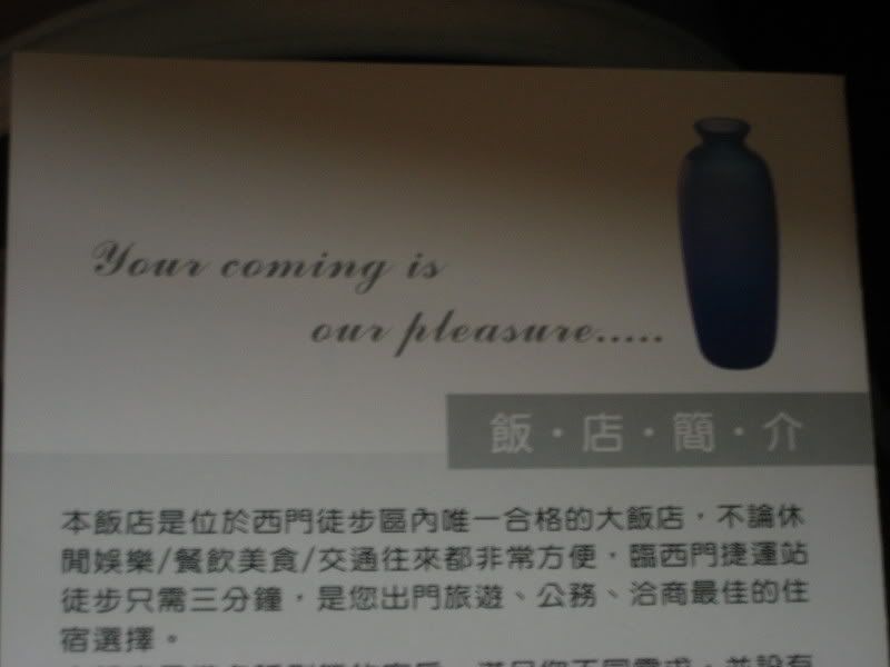 But in the meantime, I'd like to share this lovely "Chinglish" brouchure with you that I got hold of at our last hotel in Taipei. I think it rather speaks for itself =)